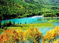 這里壯觀的冰川映襯著寧靜的湖水,茫茫的草原包容著幽深的原始森林。神秘的湖怪、古樸的圖瓦人、變換的湖水、眩人的風景都讓人癡迷,使喀納斯湖被譽為"世界上最美麗的湖泊"秋天是喀納斯最美的季節,層林盡染,色彩斑斕,目不暇接,景色如畫——沿喀納斯河逆行而上,湖水順流傾瀉而下,在山谷中蜿蜒 流淌,山間火紅的花楸樹、金黃的白樺樹、蔥綠的針葉樹在藍天白云的映照下,層層疊疊,色彩斑斕,只有去過喀納斯,才算領略到真正的秋色。